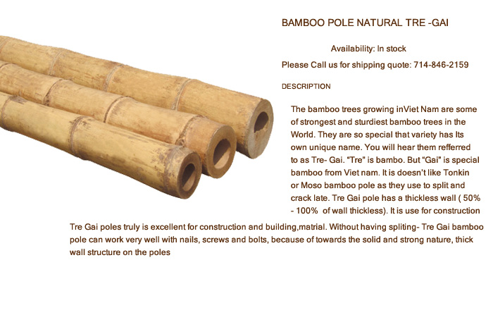 Bamboo Pole Material: Tre Gai/ available in 1" diameter to 5"diameter